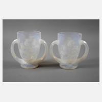 1. Hälfte 19. Jh., kobaltblaues Glas geschliffen, versilberte Emaillebemalung und goldener Pinseldekor, Arkaden mit Blümchen und Bandmotiven, beide am Stand beschädigt, berieben, H je 16 cm.