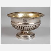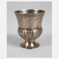 1. Hälfte 19. Jh., Silber gestempelt mit Beschaupunze Berlin mit stehendem Bär und Buchstabe K, Meisterzeichen LH für Ludwig Howaldt, Meister 1816-1838, Tremolierstrich, innen vergoldet, auf der Wandung Wappen unter Grafenkrone, Helm mit offenem Flug und dazwischen Linsenstaude als Zimier, außen Schriftzug: spes patientia et perseverantia (Hoffnung, Geduld und Ausdauer) als Devise der Grafen von Linsingen ab 1816, bauchiger Korpus, unterhalb mit geraden Rippen, ausschwingender Rand und ausgestellter Fuß, Fuß und Mündungsrand mit umlaufendem Lorbeerstab, Vergoldung berieben, Alters- und Gebrauchsspuren, H ca. 8,5 cm, D ca. 13,3 cm, G ca. 181 g.