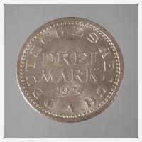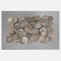 Hindenburgmedaille "Deutschen Reiches treuester Diener", D 36 mm, G ca. 24,9 g, ss++; 5 Mark Preußen, Wilhelm II. 1902, ss; 5 Mark Preußen, Wilhelm II. 1904, ss; 3 Mark Preußen, Wilhelm II. in Uniform 1914, fast vz, zweimal 3 Mark Preußen, Völkerschlachtdenkmal 1913, ss, ss+; zweimal 3 Mark Preußen, Wilhelm II. 1909 gehenkelt, 1910 ss; 3 Mark Bayern, Otto 1910, ss; 3 Mark Weimar, Walther von der Vogelweide 1930, gefasst; zweimal 2 Mark Preußen, Wilhelm II. 1904 ss, 1907 ss+; 5 Mark Garnisionskirche 1935 A, ss; 5 Mark Hindenburg 1936 A, ss; sowie fünfmal 2 Mark Hindenburg 1937 D, ss; 1938 D, ss++; 1938 A, ss+; 1939 A, ss und 1939J ss++; G ca. 290 g.