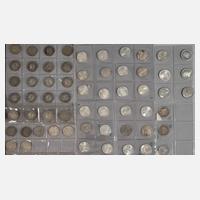 ca. 40 Kleinmünzen Deutsches Reich; sechsmal 1/2 Mark Silber; 5 Mark Preußen, Wilhelm II., 1904, ss; Medaille Albert von Sachsen, "Dem besten Schützen", D 42 mm; 2 Mark Hindenburg; ca. 50 Kleinmünzen DDR und BRD; vier Porzellanmedaillen Meissen, "Meeresmuseum Stralsund DDR", D 40 mm; ca. 100 Kleinmünzen Ausland (vorwiegend ehemaliger Ostblock); ca. 20 Kleinmünzen China, Japan und Mongolei, 1 Silber Tögrög Mongolei 1925, ss++; 50 Silber Mongo, Mongolei 1925, fast vz; 2 1/2 Silbergulden Niederlande 1959, ss; in zwei Münzalben, diese mit Erhaltungsmängeln, Maße 20 x 22 cm.