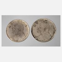zweimal 1 Dollar "Fat Man" von 1921, Avers Büste von Yuan Shikai nach links, unter chinesischen Ideogrammen, Revers zwei chinesische Ideogramme im Laubkranz, beide ss, D ca. 38 mm, G ca. 26,5 g und 26,6 g.