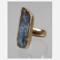 neuzeitlich, Gelbgold gestempelt 585, ca. 30 mm hoher Ringkopf, besetzt mit einem Boulderopal, RW 17 mm, G ca. 1,4 g.