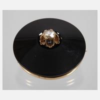 Ende 19. Jh., Gelbgold 585/1000 geprüft, mittig besetzt mit einer Diamantrose von D ca. 5 mm, montiert auf einer Onyxplatte?, rückseitig kleines Rähmchen mit Glasscheibe, D Anhänger 33 mm, G ca. 14 g.