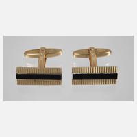 um 1980, Gelbgold gestempelt 333, schlichte Manschettenknöpfe, jeweils besetzt mit einer länglichen Onyxplatte, Maße des Kopfes 20 x 9 mm, leichte Tragespuren, G gesamt ca. 7 g.