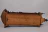 deutsch, um 1890, auf der Werkplatine gemarkt, Werk mit drei Gewichten und Viertelstundenschlag auf zwei Tonstäbe, Gehäuse aus Nussbaum mit aufgesetzten Messingapplikationen, originale Bekrönung, Ziffernblatt, Pendellinse und Gewichte mit graviertem Ornamentdekor, funktionstüchtig, Ziffernblatt etwas korrodiert, sonst guter unrest. Originalzustand, H 124 cm.