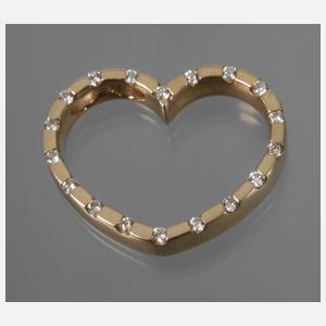 neuzeitlich, Gelbgold gestempelt 585, besetzt mit 18 Kleinstbrillanten, Maße ca. 17 x 21 mm, G ca. 3,7 g.