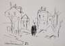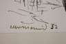 Paar auf einer Straße zwischen Häusern, mit wenigen Strichen gekonnt angelegte Zeichnung, Faserstift, um 1990, links unten signiert und mit (unwahrscheinlicher) Jahreszahl datiert "Albert Hennig (19)52", auf Unterlagekarton montiert, Blattmaße ca. 10,5 x 14,7 cm. Künstlerinfo: dt. Maler, Fotograf und Graphiker (1907 Leipzig bis 1998 Zwickau), studierte 1932-33 mit Stipendium am Bauhaus Dessau/Berlin bei Joost Schmidt, Mies van der Rohe, Wassily Kandinsky, Paul Klee und Josef Albers, anschließend arbeitslos, 1935-45 als Bauarbeiter dienstverpflichtet, nach 1945 Gründungsmitglied der Gruppe „Bildender Künstler“ beim Kulturbund Zwickau, ab 1952 Mitglied des Verbandes Bildender Künstler (VBK) der DDR, wegen Auseinandersetzung mit dogmatischen Kulturfunktionären 1952-72 als Betonbauer tätig, in seiner Freizeit wächst ein bedeutendes Werk in der Tradition des Bauhauses, ab 1972 freischaffend und auch in der DDR zunehmende Anerkennung seines Schaffens, erhielt zahlreiche Auszeichnungen, unter anderem Max-Pechstein-Preis und Bundesverdienstkreuz, tätig in Zwickau, Quelle: Vollmer, Eisold “Maler in der DDR” und Internet.