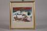 verschneite bergige Landschaft mit vereinzelten Häusern und einer Kirche unter abendlichem Himmel, Filzstiftzeichnung und Aquarell, im unteren Bereich links signiert und datiert "AHennig (19)81" und rechts bezeichnet "Johanngeorgenstadt", rückseitig betitelt und mit Notaten versehen, auf Unterlagekarton und hinter Glas gerahmt, Blattmaße ca. 13,5 x 17,3 cm. Künstlerinfo: dt. Maler, Fotograf und Graphiker (1907 Leipzig bis 1998 Zwickau), studierte 1932–33 mit Stipendium am Bauhaus Dessau/Berlin bei Joost Schmidt, Mies van der Rohe, Wassily Kandinsky, Paul Klee und Josef Albers, anschließend arbeitslos, 1935–45 als Bauarbeiter dienstverpflichtet, nach 1945 Gründungsmitglied der Gruppe „Bildender Künstler“ beim Kulturbund Zwickau, ab 1952 Mitglied des Verbandes Bildender Künstler (VBK) der DDR, wegen Auseinandersetzung mit dogmatischen Kulturfunktionären 1952–72 als Betonbauer tätig, in seiner Freizeit wächst ein bedeutendes Werk in der Tradition des Bauhauses, ab 1972 freischaffend und auch in der DDR zunehmende Anerkennung seines Schaffens, erhielt zahlreiche Auszeichnungen, unter anderem Max-Pechstein-Preis und Bundesverdienstkreuz, tätig in Zwickau, Quelle: Vollmer, Eisold “Maler in der DDR” und Internet.