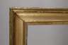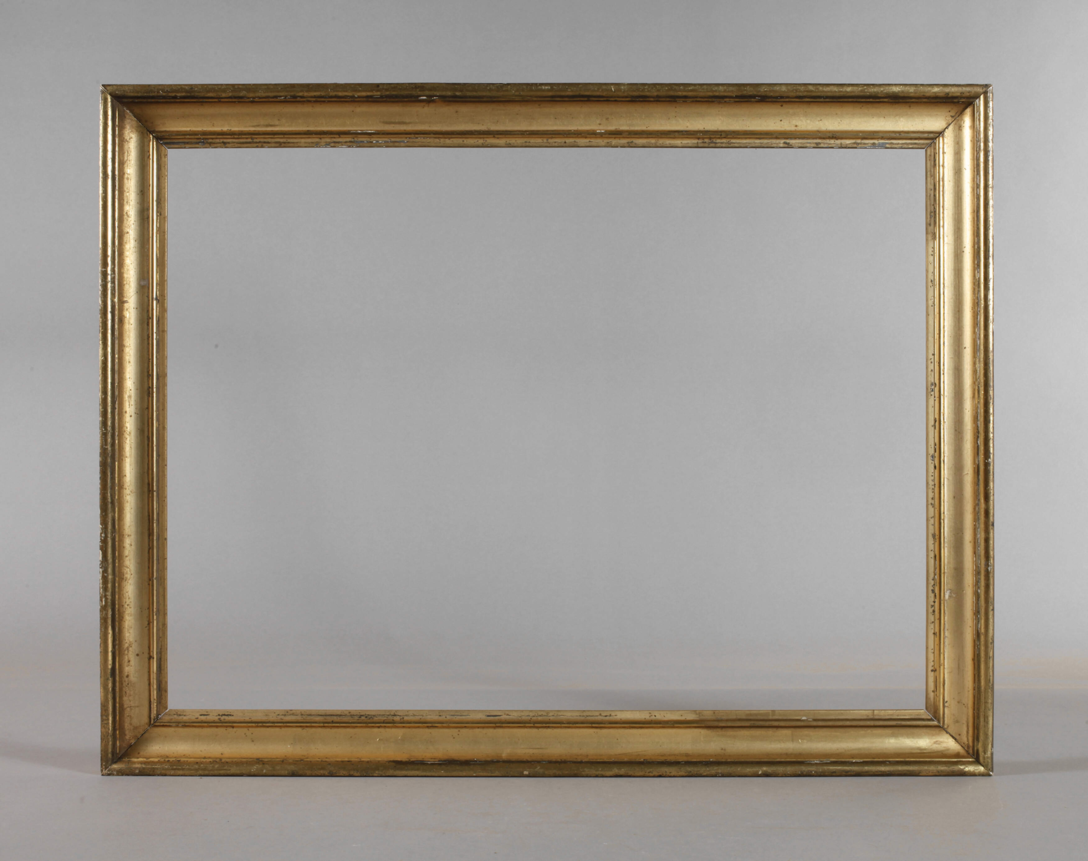 20. Jh., ca. 6 cm breite, gekehlte Waschgoldleiste partiell poliert, Ecken auf Gehrung gesägt und verzapft sowie verleimt, Altersspuren, Falzmaße 69,5 x 51,5 cm.