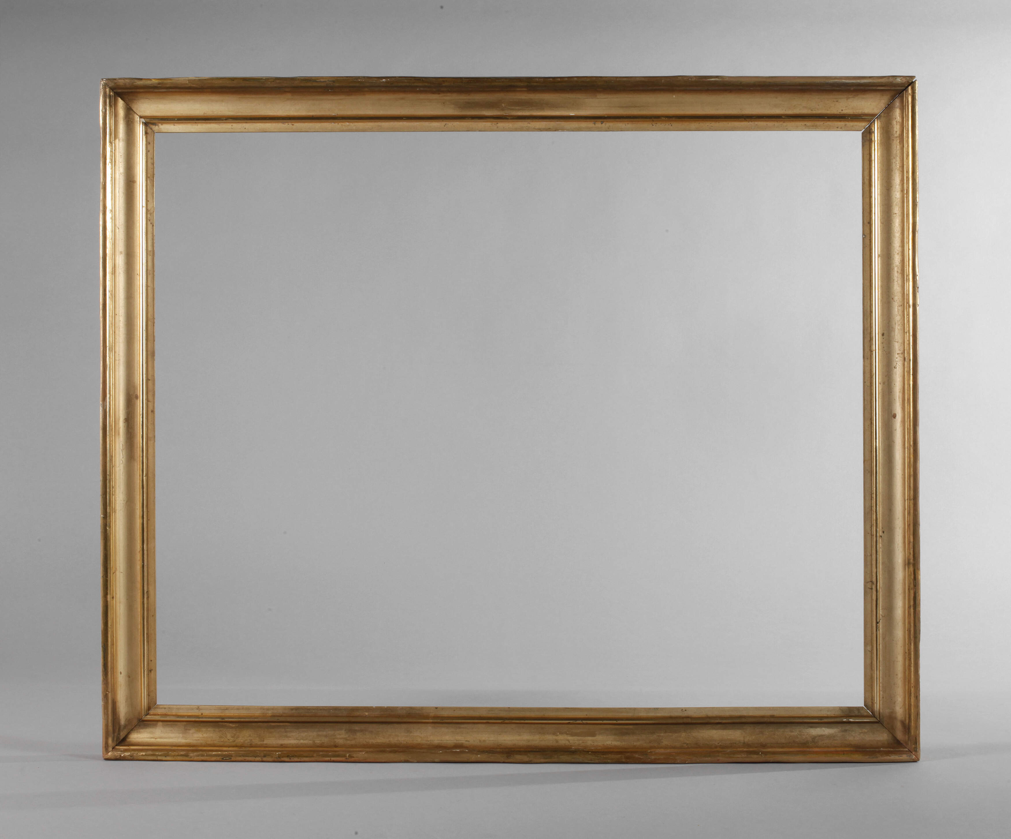 Mitte 19. Jh., ca. 6 cm breiter, aufsteigend profilierter Rahmen, versilberte und schellackpatinierte Holzleiste, Gehrungen geschnitten, partiell poliert, restauriert, Altersspuren, Falzmaße ca. 80 x 65 cm.