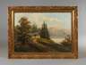 um 1900, Rahmen aus ca. 8 cm breiter, steigend profilierter, mit ionischer Kymation sowie Rocaillen, Muschel- und Bandelwerk gestuckter vergoldeter Holzleiste, Gehrungen geschnitten, Falzmaße ca. 52 x 74 cm, beigefügt Ölgemälde einer Berglandschaft mit Hütte am Wald.