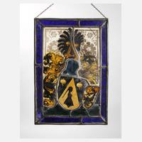 Ende 19. Jh., im Renaissancestil, mit gemaltem Wappen in Schwarzlot, Glas mit mehreren Sprunglinien, Maße 39 x 28 cm.