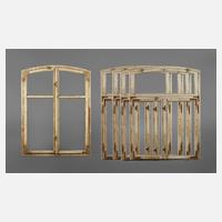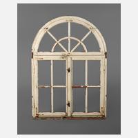 2. Hälfte 19. Jh., zweiflügelig, Oberlicht mit Stichbogen, originale gusseiserne Beschläge, im Bergezustand, alt verglast, einige Glasscheiben fehlen, restaurierungsbedürftig, Maße 142 x 99-104 cm,