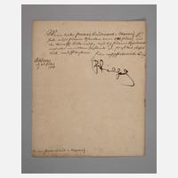 Markgraf und Kurfürst zu Brandenburg (1688 Cölln bis 1740 Potsdam), dem legendären “Soldatenkönig” und Vater Friedrich des Großen an den General-Leutnant von Marwitz, “Mein lieber General Lieutenant von Marwitz. Ich habe wegen Meinen Officiers und Soldathen, welche von auswärtigen Orthen nach meinen Lande reysen, resorbiret [aufgenommen], daß sich selbige samtlich von den Orth ihrer Abreyse, mit gehörigen Päßen versehen, und wann sie etwa in Meinen Landen an den erwardensten Orthen dernach nicht befraget, sondern ohne examinirung [Prüfung] durchgelaßen würden, solches Ihren Kriegs und Domainen Cammern auch Regierungen, oder deren Obrigkeiten jeden Orths, wo sie ohne Nachfrage durchgelaßen wurden zur Untersuchung und Bestraffung aler Bediensten, vorzeigen sollen. Ihr sollet also dieses gehörig bey Ihrem Regiment publicieren und darauf halten. Ich bin Ihr wohlaffectionierter [wohlwollender] König ...”, bei dem Adressaten handelt es sich wohl um den Generalmajor Heinrich Karl von der Marwitz (1680 Sellin bis 1744 Breslau), ab 1720 Mitglied des preußischen Tabakskollegiums des Soldatenkönigs und ab 1724 Chef des Altpreußischen Infanterieregiments “von Dönhoff” in Halberstadt, 1739 zum Ritter des “Schwarzen Adlerordens” ernannt, gegeben am 4. September 1739 in Berlin und vom König unterzeichnet, altersgemäßer Zustand auf Bütten, Maße 19 x 23 cm.