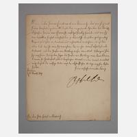 ab 1871 Kaiser von Deutschland (1797 Berlin bis 1888 Berlin), an den Grafen von Schönburg-Glauchau, “Hochwohlgebohrener Graf! Durch meine Verordnung vom 2ten d. Ms. [des Monats] habe ich beide Häuser des Landtages der Monarchie zum 14ten d. Ms. in Meine Haupt- und Residenzstadt Berlin einberufen. Indem Ich Sie unter Bezugnahme auf die Verordnung vom 12ten Oktober 1854 hiervon in Kenntniß setze, lade ich Sie ein, an gedachten Tage daselbst zu erscheinen und Ihren Sitz in dem Herrenhause einzunehmen. Ich verbleibe mit besonderer Wertschätzung des Herrn Grafen wohlgeneigter Wilhelm. Berlin, den 4ten Januar 1888”, von Wilhelm I. handschriftlich unterzeichnet, altersgemäßer Zustand auf Papier, Maße 21 x 27 cm.
