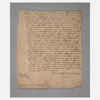 genannt “Der Große” von Preußen, ab 31. Mai 1740 König in Preußen, ab 1772 König von Preußen (1712 Berlin bis 1786 Potsdam) an den General-Leutnant von Marwitz, “Mein lieber General von der Infanterie von Marwitz. Ihr Schreiben vom 13. May ist hier zu seiner Zeit ... eingeliefert worden. ...”, im weiteren Verlauf regelt Friedrich II. diverse Kontributionszahlungen nach seinem Sieg in der Schlacht bei Chotusitz vom 17. Mai 1742 im Zuge des Ersten Schlesischen Krieges, bei dem Adressaten handelt es sich wohl um den Generalmajor Heinrich Karl von der Marwitz (1680 Sellin bis 1744 Breslau), ab 1720 Mitglied des preußischen Tabakskollegiums des Soldatenkönigs und ab 1724 Chef des Altpreußischen Infanterieregiments “von Dönhoff” in Halberstadt, 1739 zum Ritter des “Schwarzen Adlerordens” ernannt, gegeben am 30. Mai 1742 im Heerlager bei Chotusitz und vom König unterzeichnet, altersgemäßer Zustand auf Bütten, Maße 19 x 23 cm.