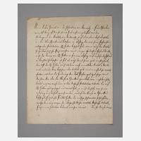 genannt “Der Große” von Preußen, ab 31. Mai 1740 König in Preußen, ab 1772 König von Preußen (1712 Berlin bis 1786 Potsdam), an den General-Leutnant von Marwitz, “Mein lieber General-Lieutenant v. Marwitz. Ich habe Euren Bericht vom 5. dieses betrachtend den Ausschlag ihrer in Wolfenbüttel gehabten Commission wohl erhalten, ich ersehe auch auß der Antwort des Herzogs Lit. ... daß solche nicht wohlig vergnüglich gewesen, so wie ich es gewünscht hatte, denn ob Ich gleich, wann es nicht anders seyn kan, mir gefallen laße daß mir die 700 Mann geliefert werden, welche fast aber der Prinz Ferdinand [gemeint ist der erst 10-jährige Prinz Ferdinand von Preußen (1730 Berlin bis 1813 Berlin), welcher bereits als 5-jähriger Mitglied des Infanterieregiments “Kronprinz” war und schließlich von seinem Bruder Friedrich II. unmittelbar nach dessen Krönung 1740 zum Chef des neu gegründeten Infanterieregiments Nr. 34 ernannt wurde] nicht mehr aus ein Feld Battaillon bekommt; ...”, bei dem Adressaten handelt es sich wohl um den Generalmajor Heinrich Karl von der Marwitz (1680 Sellin bis 1744 Breslau), ab 1720 Mitglied des preußischen Tabakskollegiums des Soldatenkönigs und ab 1724 Chef des Altpreußischen Infanterieregiments “von Dönhoff” in Halberstadt, 1739 zum Ritter des “Schwarzen Adlerordens” ernannt, gegeben am ? Juli 1740 in Stargard und vom König unterzeichnet, altersgemäßer Zustand auf Bütten, Maße 19 x 22 cm.