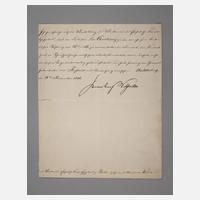 (1795 Berlin bis 1861 Potsdam), “Ich genehmige auf die Vorstellung des Vorstandes des Elisabeth-Kinder-Hospitals, daß der Cellistin Lise Christiany zu dem von ihr zum Besten dieser Stiftung am 26. d. M. [des Monats] zu veranstaltenden Concert, der Concertsaal im Schauspielhause miethsfrei überlassen werden, wenn derselbe nicht an diesem Tage anderweitig gebraucht wird, und habe hiernach den General-Intendanten von Küstner mit Anweisung versehen. Charlottenburg den 21. November 1846 - Friedrich Wilhelm”, der Brief ist adressiert “An den Vorstand des Elisabeth-Kinder-Hospitals zu Berlin zu Händen des Obersten von Webern.”, vom König handschriftlich unterzeichnet, altersgemäßer Zustand auf Papier, Maße 21 x 26 cm.