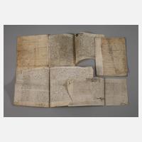 15. bis 17. Jh., fünf Stück, darunter "Generale de Paris", "Bail De Lafeme Delugij", "Leitre De La CanceLiere" etc., teilweise mit Wappen, altersgemäßer Zustand.