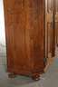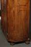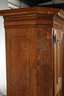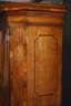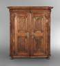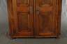1. Hälfte 18. Jh., Nussbaum auf Nadelholz furniert, mittig teilbarer, zweitüriger Schrank mit abgeschrägten Ecken, Türen mit feinen Kassettenfüllungen, ornamentale Einlegearbeiten in Ahorn und Nussbaumwurzel, verzinnte Eisenbeschläge, originales Schloss und Schlüssel, rest.bed., Maße 188 x 170 x 67 cm.