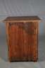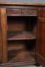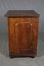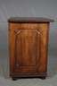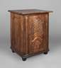 2. Hälfte 18. Jh., Nussbaum massiv, kleiner, eintüriger Schrank mit zwei innenliegenden Schubkästen und fest eingebautem Einlegeboden, die geschwungene Türfüllung mit Oberflächenschnitzerei verziert, die Seiten wurmstichig (inaktiv), alt restauriert, Schlüssel fehlt, Oberfläche mit stärkeren Gebrauchsspuren, Maße 95 x 76 x 64 cm.
