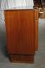 Nussbaum und Nussbaummaser furniert, 1930/40er Jahre, schlichter Korpus mit leicht vorspringender Front, zweitürig, mit Schubkasten, dieser mit klappbarer Front und Inneneinrichtung, originale Glasplatte, normale Alters- und Gebrauchsspuren, mit Schlüssel, Maße 91 x 121 x 50 cm.