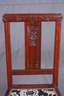 Frankreich, um 1930, Mahagoni massiv, Lehne mit geschnitztem stilisierten Floraldekor, alter Samtbezug verschlissen, sonst stabiler Zustand, H 90 cm, SH 45 cm.