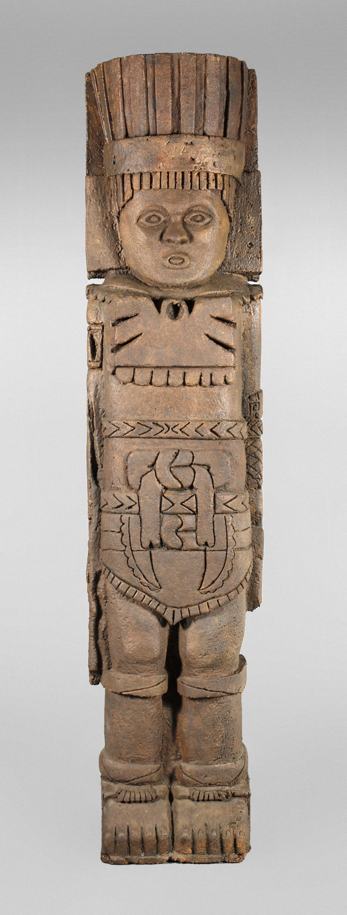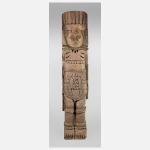 20. Jh., ungemarkt, Styrodur, dunkel gefasst, überlebensgroße stilisierte Totem-Figur, in stilisierter Formsprache, Höhe 245 cm.