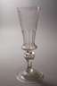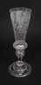 2. Hälfte 19. Jh., dünnwandiges Glas, blasiger Abriss, der Stand nach außen umgeschlagen, mehrteiliger Schaft mit hohlem Baluster, die lange Kuppa mit feinem Mattschliffdekor, Rosenranken und Gitterdekor, Widmung "G.B. s/L J.M.", guter Zustand, H ca. 33 cm.