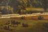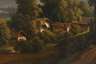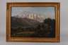 sommerliche Gebirgslandschaft mit weitem Blick auf Wiesen, Felder und Kuhweide, ein kleines Dorf, Wanderer und landwirtschaftliches Pferdefuhrwerk, am Horizont ein Fluss und imposante Alpenkulisse, wenig pastose, sehr detailreiche Landschaftsmalerei mit feiner Pinselschrift, Öl auf Leinwand, Mitte 19. Jh., unsigniert, Gemälde wird Johann Anton Castell zugeschrieben, Craqueluren, wenige Malschichtausbrüche, retuschiert, in Goldstuckrahmen gerahmt, Falzmaße ca. 54,5 x 77,5 cm. Künstlerinfo: eigentlich Johann Anton Castell, auch Johann Anton Castelli, dt. Landschaftsmaler und Kopist (1810 Dresden bis 1867 Dresden), studierte 1827–28 an der Akademie Dresden, ab 1829 Weiterbildung bei Johan Christian Clausen Dahl in Dresden, unternahm Studienreisen durch Böhmen, das Salzkammergut (1831) und Tirol sowie nach Wien, beeinflusst von Caspar David Friedrich, beschickte die Dresdner Akademieausstellungen, tätig in Dresden, Quelle: Thieme-Becker, AKL, Saur "Bio-Bibliographisches Künstlerlexikon", Schülerlisten der Dresdner Akademie, Boetticher, Bénézit und Wikipedia.
