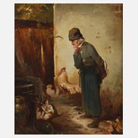 um 1900, rechts unten signiert M. Mühlig, Bauer mit Pfeife schaut seinen beiden Katzenkindern beim Spielen zu, Öl auf Leinwand, Oberfläche partiell craqueliert, in einfacher Leiste gerahmt, IM 29.5 x 24 cm. Künstlerinfo: eigentlich Meno Friedrich Mühlig, dt. Genre- und Landschaftsmaler sowie Illustrator und Zeichner (1923 Eibenstock bis 1873 Dresden), Sohn des Dekorationsmalers August Friedrich Mühlig aus Eibenstock, Jugend in Freiberg, studierte 1840-47 an der Akademie Dresden, zunächst Zeichenschüler in der Unterklasse bei Ludwig Richter, dann bei Heinrich Gotthold Arnold, Friedrich Rensch und Carl Gottlieb Peschel, schließlich 1844/45-49 Meisterschüler bei Julius Hübner, fand seine Motive in der Umgebung Dresdens und auf Studienreisen durch das sächsische und böhmische Erzgebirge, gehörte zum Kreis der Dresdner Spätromantiker, ab 1849 freischaffend in Dresden-Neustadt, Quelle: Thieme-Becker, Saur "Bio-Bibliographisches Künstlerlexikon", Friedrich "Ludwig Richter und sein Schülerkreis", Künstlerlexikon Erzgebirge, Günther "Spätromantische Idylle", Seubert, Müller-Singer, Boetticher, Schülerlisten der Dresdner Akademie, Bantzer "Hessen in der deutschen Malerei" und Wikipedia.