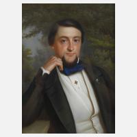 fein ausgearbeitetes Brustbildnis eines Herrn mittleren Alters vor Waldlandschaft und mit zum Betrachter gerichtetem Blick, Pastell, Mitte 19. Jh., rückseitig alt bezeichnet "Eduard Ferdinand Nasse, Geheiminspektor im Finanzministerium in Dresden, geboren am 30. November 1815 in Chemnitz, gestorben am 18. Mai 1878 in Dresden", hinter Glas gerahmt, Falzmaße ca. 31,5 x 24 cm.