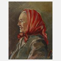 alte Frau mit Brille und rotem Kopftuch im Profil, gering pastose Portraitmalerei, Öl auf Hartfaserplatte, um 1960, rechts unten signiert "M. Christoph", rückseitig Montierungsspuren, Randbestoßungen, ungerahmt, Maße ca. 26 x 21 cm. Künstlerinfo: dt. Maler und Graphiker (1918 Pockau im Flöhatal bis 2013 Sayda), 1932–36 Lehre als Dekorationsmaler in Chemnitz, künstlerisch weitestgehend Autodidakt, anschließend tätig in Dörnthal/Olbernhau, 1938 Einzug zum Arbeits- und Wehrdienst, nach Kriegsdienst im 2. Weltkrieg 1947 Entlassung aus frz. Gefangenschaft, seither freischaffend in Dörnthal im Erzgebirge tätig, 1947 Aufnahme in den Freiberger Künstlerverband, 1948 Gründungsmitglied des Freiberger Künstlerverbandes “Die Kaue”, 1957 Meisterprüfung im Dekorationsmalerhandwerk, studierte 1964–67 an der Akademie Dresden/Außenstelle Annaberg Buchholz, Leiter zahlreicher Malzirkel, künstlerisches Lebenswerk im Besitz der Gemeinde Pobershau und im Museum Dörnthal, tätig in Dörnthal, zuletzt im Pflegeheim Sayda, Quelle: Vollmer, Saur "Bio-Bibliographisches Künstlerlexikon" und Wikipedia.