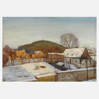 sonniger Wintertag mit Ansicht eines verschneiten vogtländischen Bauernhofs, das vorliegende Motiv taucht wiederholt im Werk des Malers auf, welches er sowohl in Öl als auch als Radierung festhielt, möglicherweise handelt es sich um das Elternhaus des Künstlers in Meßbach, des Künstlers tiefe Verwurzelung im ländlich-bäuerlichen Milieu wird aus seiner Selbstbiographie im 70. Lebensjahr deutlich, in der Enders schreibt "... Die Ahnenforschung hat ergeben, daß meine Vorfahren mütterlicherseits Müller und väterlicherseits Bauern und Schmiede waren. ... Als siebentes Kind des Bauern Wilhelm Enders, wurde ich am 11. Juli 1869 im Dörfchen Meßbach bei Plauen i. V. geboren. Ich hatte das große Glück, unmittelbar am Busen der Natur emporwachsen und von kindauf an allen Freuden und Leiden bäuerlichen Lebens teilnehmen zu können. ...", stimmungsvolle, gering pastose impressionistische Malerei, Öl auf Karton, links unten zweimal ligiert monogrammiert "AE" und datiert "[19]14", rückseitig diverse Eigentümerannotationen, farbschwundrissig, etwas restaurierungsbedürftig, gerahmt, Falzmaße ca. 49 x 69 cm. Künstlerinfo: dt. Maler und Radierer (1869 Meßbach bis 1946 Oberweischlitz), frühe Förderung durch seinen Lehrer Louis Riedel (1847–1919), studierte 1884–89 an der Plauener Kunstschule, anschließend zweijähriger Militärdienst, ab 1891 Anstellung im Berliner Druck- und Verlagshaus W. Hagelberg AG als Zeichner chromolithographischer Karten und Luxuspapiere, 1893 Hinwendung zur freien Malerei, unternahm zusammen mit Albin Schlehahn regelmäßig Wanderfahrten in den Schwarzwald, die Fränkische Schweiz, Alpen und Ostsee, gefördert vom Direktor der Plauener Kunstschule Richard Hofmann und dem Plauener Sammler und Mäzen Robert Wirth, erhielt in München Privatunterricht, studierte an der Akademie Karlsruhe bei Gustav Schönleber und Robert Poetzelberger und 1899–1900 Studium an der Akademie Stuttgart bei Carlos Grethe, ab 1907 freischaffend tätig in Oberweischlitz bei Plauen, Quelle: Vollmer, Dressler, Saur Bio-Bibliographisches Künstlerlexikon, Müller-Singer, Frank Weiß "Malerei im Vogtland" und Wikipedia.