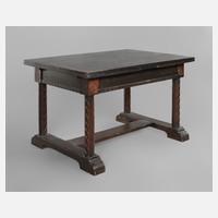 Entwurf um 1910, Ausführung Worpsweder Werkstätte Franz Vogeler/Tarmstedt bei Bremen, Eiche massiv, dunkelbraun gebeizt, ausziehbare Platte, restauriert, Oberfläche nachträglich gebeizt, Alters- und Gebrauchsspuren, H 77,5 cm.