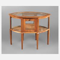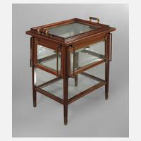 wohl Wien, um 1900, Mahagoni massiv, allseitig verglaster Korpus mit facettgeschliffenen Scheiben und außenliegender Mechanik sowie einem abnehmbaren Tablett, alle Seiten klappbar, schwere, massive Ausführung, normale Gebrauchsspuren, Maße 79 x 68 x 50 cm.