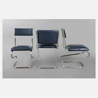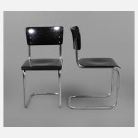 Entwurf Mart Stam 1931, Ausführung wohl Thonet 1930er Jahre, Stahlrohr verchromt, Sitz und Lehne aus schwarz lackiertem Schichtholz, Alters- und Gebrauchsspuren, Schrauben ergänzt, Chrom Z 2, H 79 cm, SH 45 cm.