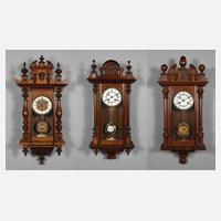 um 1880-1900, einer mit Viertelstundenschlag, einer gemarkt A. Türler Zürich, alle funktionstüchtig, mit Alters- und Gebrauchsspuren, Gehäuse teilweise mit Fehlstellen, H 69, 83 und 85 cm.