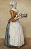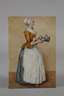 blaue Zeptermarke 1870–1945, hochrechteckige Porzellanplatte mit feiner polychromer Aufglasurbemalung, Darstellung einer biedermeierlich gekleideten Kammerzofe, ein Tablett mit Schokoladentasse und Wasserglas tragend, nach dem 1743/45 entstandenen Pastell von Jean-Étienne Liotard, links unten signiert H. Fritzsche (wohl Hermann Fritzsche, um 1914 in Meißen tätig), in breitem Goldstuckrahmen der Zeit, guter altersgemäßer Zustand, Maße Platte 29 x 19,5 cm, Maße Rahmen 45 x 35 cm.