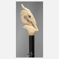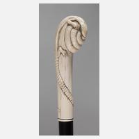 20. Jh., Horn beschnitzt, in Phallusform gearbeitetes Zierobjekt, in plastisch gefertigtem Satyrenhaupt auslaufend, leichte Altersspuren, L 28,5 cm.