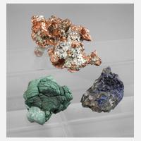 Anfang 20. Jh., meist undeutlich signiert, Gouache auf Platte mit partieller Weißhöhung, Bruststücke zweier Damen nach historischem Vorbild sowie Portraitdarstellung Napoleon I. und seiner Gattin Josephine, alle in reliefierten Messingrahmen hinter Glas gefasst, gute Erhaltung, H max. 9 cm.