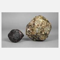 unbestimmten Alters, Marmor behauen, teils dunkel gefasst, nach antikem Vorbild gefertigte weibliche Häupter, eines mit späterem Onyxsockel, H 17 und 19 cm.