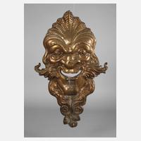 1920er Jahre, Messingblech getrieben, groteske Darstellung eines Flussgottes, bekrönt von Muschelelement, Alters- und Korrosionsspuren, gedellt, H 57 cm.