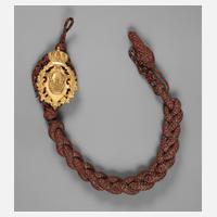 6. Stufe, geflochtene Rundschnur mit einer Eichel und vergoldeter Auflage W II. unter Krone im Eichenlaubkranz, sehr guter Zustand.