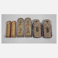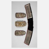 für einen Oberstabsarzt, doppelte geflochtene silberne Blattschnur mit einem roten Durchzug auf blauem Samt; für einen Hauptmann der Artillerie (wohl Bayern), doppelte silberne Flachschnur mit blauen Zügen, jeweils zwei Sterne und eine 4 als Auflagen sowie für einen Beamten (wohl Sachsen), doppelte goldene Flachschnur mit grünen Zügen, alle im guten Zustand.