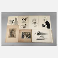 dabei zwei Radierungen, zwei Fotos ”Zur Erinnerung a. d. Biedermeierabend i. Hause Erler a. 25.1.1920” und 30 von 32 (Blatt 10 und 14 fehlt) Lithos einer Georg Erler gewidmeten und von Oskar Seyffert gezeichneten Serie um 1937, auf Blatt 31 wie folgt beschriftet ”Zur Erinnerung an seine Collegen zeichnete und widmete Oskar Seyffert diese Blätter Georg Erler und druckte Johannes Hofmann”, unterschiedliche Erhaltungen, unterschiedliche Formate, Blattmaß max. ca. 48 x 31,5 cm. Künstlerinfo: eigentlich Georg Oskar Erler, dt. Maler, Zeichner, Graphiker, Karikaturist und Radierer (1871 Dresden bis 1950 Ainring bei Bad Reichenhall), studierte 1891–94 an der Kunstgewerbeschule Dresden, 1894–98 an der Dresdner Akademie bei Gotthardt Kuehl und Hugo Bürkner, 1897 einige Monate in Paris, anschließend ein Jahr in München und in Rom, ab 1902 in Dresden tätig, schuf nach 1900 zahlreiche Karikaturen, die ihn rasch bekannt machten, 1902 zusammen mit Kuehl, Ferdinand Dorsch und Fritz Beckert Gründungsmitglied der Künstlergruppe „Die Elbier“, 1913–37 Professor an der Kunstgewerbeschule Dresden, 1945 Verlust seines Ateliers und Großteil seines Lebenswerks durch Bombenangriff auf Dresden, Übersiedlung nach Ainring in Oberbayern, Quelle: Thieme-Becker, Vollmer, Dressler und Internet.
