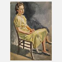 Studie einer jungen sitzenden Frau, Mitte 20. Jh., rückseitig Nachlassstempel Kurt Opitz Leipzig, unten rechts unleserlich signiert, Falzmaße 65 x 48,5 cm. Künstlerinfo: dt. Maler, Zeichner, Sgraffitokünstler und Graphiker (1919 Elsterberg bis 2011 Elsterberg), zunächst Lehre zum Dekorationsmaler, stud. 1937/38 an der Plauener Kunst- und Fachschule für Textilindustrie, 1939-48 Kriegsdienst und -gefangenschaft, 1942/43 Gasthörer an der Akademie Berlin bei Paul Thol, Wilhelm Tank und Wilhelm Becker, 1948 Rückkehr nach Elsterberg und hier ab 1952 freischaffend, ab 1952 Mitglied des Verbandes Bildender Künstler (VBK) der DDR, tätig in Elsterberg, Quelle: Vollmer, Eisold "Künstler in der DDR", Frank Weiß "Malerei im Vogtland" und Internet.