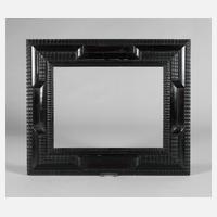 wohl Ende 19. Jh., ca. 10 cm breiter, absteigend profilierter Holzrahmen mit ausgestellten Ecken, schwarz gebeizt und teilweise gelackt, auf überblattetem Blendrahmen, eine kleine Fehlstelle, Falzmaße ca. 41 x 31 cm.