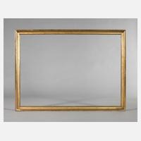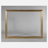 20. Jh., ca. 12 cm breiter, zur Rahmenmitte aufsteigend profilierter, steil gekehlter, gestuckter und goldbronzierter Rahmen, Gehrung geschnitten und partiell über Eck gearbeitet, Altersspuren, Falzmaße ca. 124,5 x 64,5 cm.