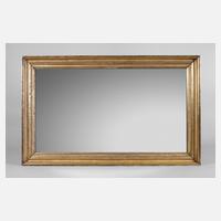 1. Hälfte 19. Jh., ca. 7 cm breite, aufsteigend profilierte, versilberte und schellackpatinierte Leiste, facettiertes Spiegelglas, rückseitig montierte Holzplatte, Gehrung gesägt, Spiegelglas mit Oxidationsspuren, Altersspuren, Lichtmaße ca. 81,5 x 46,5 cm.